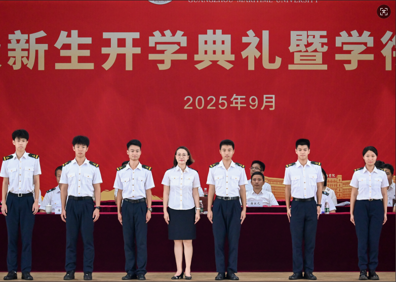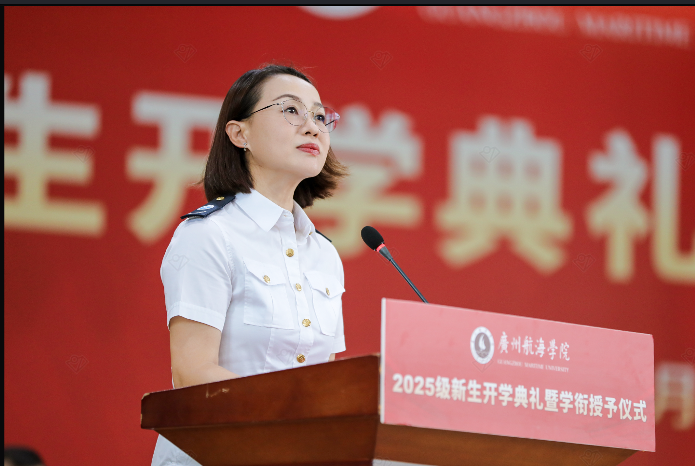开学典礼上,陶韶菁发表了题为《海不辞水士不厌学 奋楫开启青春新航程》的致辞。她代表学校全体师生员工,向所有新“广航人”表示最热烈的欢迎。她以“广航是一所赓续红色基因、培养行业勇者、深植蓝色国土的大学”为脉络,生动讲述了广航61年的办学传承与时代使命,并向新生提出四点殷切希望:一是希望同学们心怀强国之志,在第二个百年奋斗目标中挥洒青春。二是希望同学们拥抱AI时代,做善学、善思、善行的追光者。三是希望同学们涵养蓝色情怀,在海洋科技的浪潮中实现人生价值。四是希望同学们坚持躬耕实践,于知行合一中成长为全面发展的时代新人。