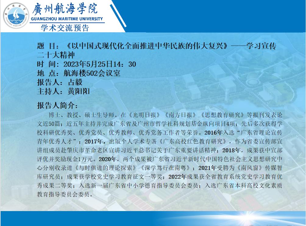 占毅教授学术讲座预告:以中国式现代化全面推进中华民族的伟大复兴